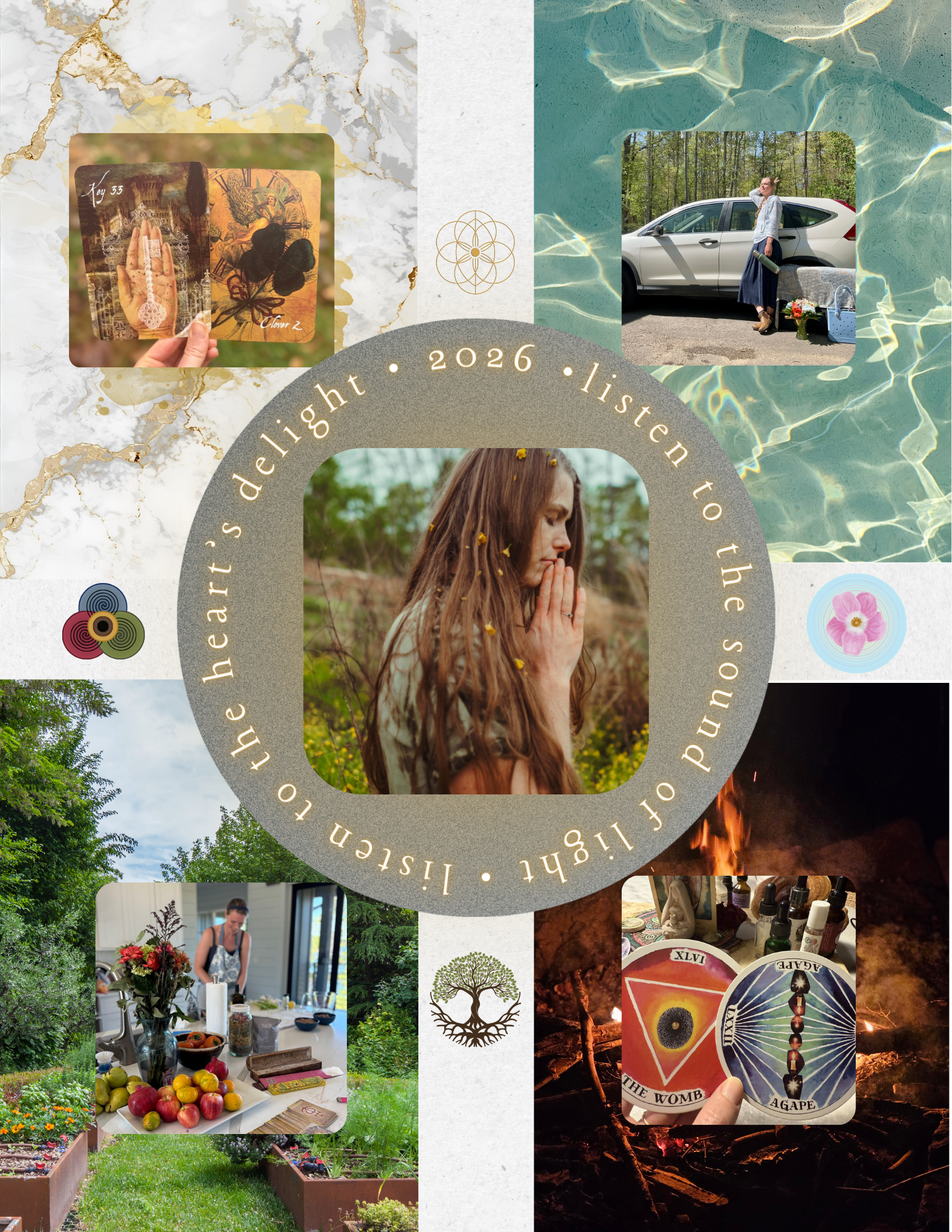 In the upper right corner is the element of Water and the wisdom of sound and cellular memory through the Sophianic Wave, a restorative and transformational healing ceremony.
